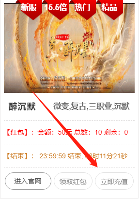 2,进入游戏详情页后可查看游戏介绍领取福利礼包,充值点击立即充值