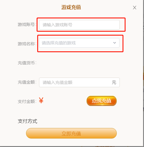 5,输入游戏账号选择充值货币,输入或者选择充值金额